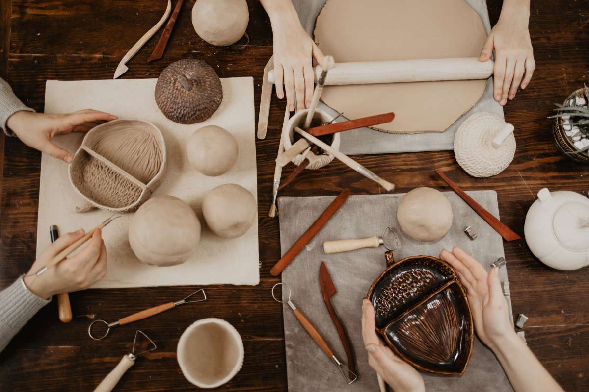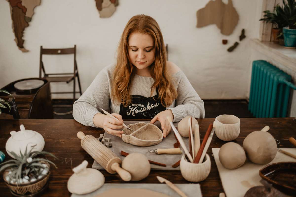 Ручная лепка - настоящая арт-терапия. Во время занятия забываешь обо всем! Процесс увлекательный, и сама глина очень приятная на ощупь. Вначале мы лепим мисочку, стараемся придать ей каплевидную форму. Затем вырезаем и приклеиваем перегородку, украшаем верхушку черенком. После немого подсушиваем желудь, и с помощью различных стеков и петелек наносим узор. Так и не получается определиться, что интереснее - лепить или украшать. Потому что работать петлей, делать ямочки на твердой глине тоже очень затягивает! Два часа пролетают незаметно, и вот у вас в руках самый настоящий желудь.