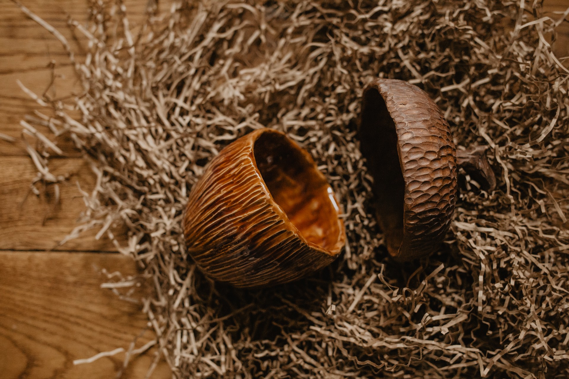 Вначале мы с вами будем лепить сам стаканчик - разминаем глину, разглаживаем, простукиваем, снова заглаживаем и отставляем в сторонку. Далее делаем шапочку. Кстатии, вы знали, что крышечка желудя называется "плюска"? Так вот, лепим эту плюску, примеряем, чтобы хорошо садилась, прикрепляем маленькую ручку. Вот и пролетело 2 часа!